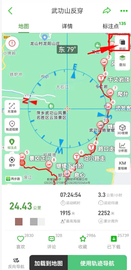 瞬间,轨迹线就“贴”在了真实的山脊、溪流、树林上——哪里陡、哪里平、有没有路,一眼看穿!