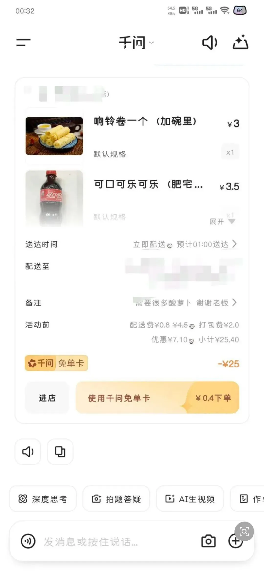 · 领取结果:成功触发后,可获得一张 “千问免单卡”,面额为 25元无门槛抵扣券。