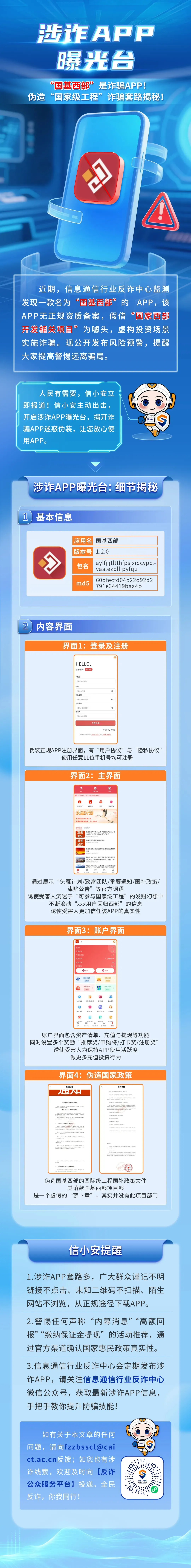 “国基西部”是诈骗APP!伪造“国家级工程”诈骗套路揭秘! 素材来源:上海移动 来源:信息通信行业反诈中心 反传防骗,我们一路同行! 提供骗局线索邮箱:3102267264@qq.com、QQ:3102267264 如果不想错过利箭在行动的每日推送, 就点个【赞】和【在看】吧
