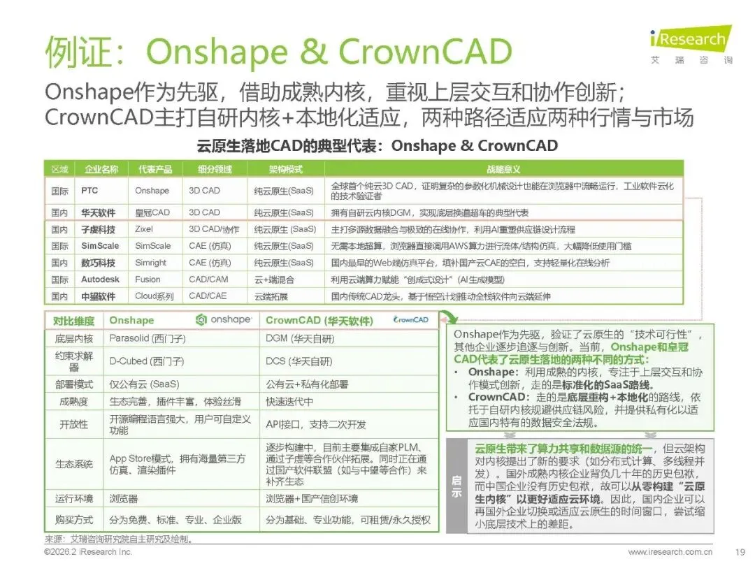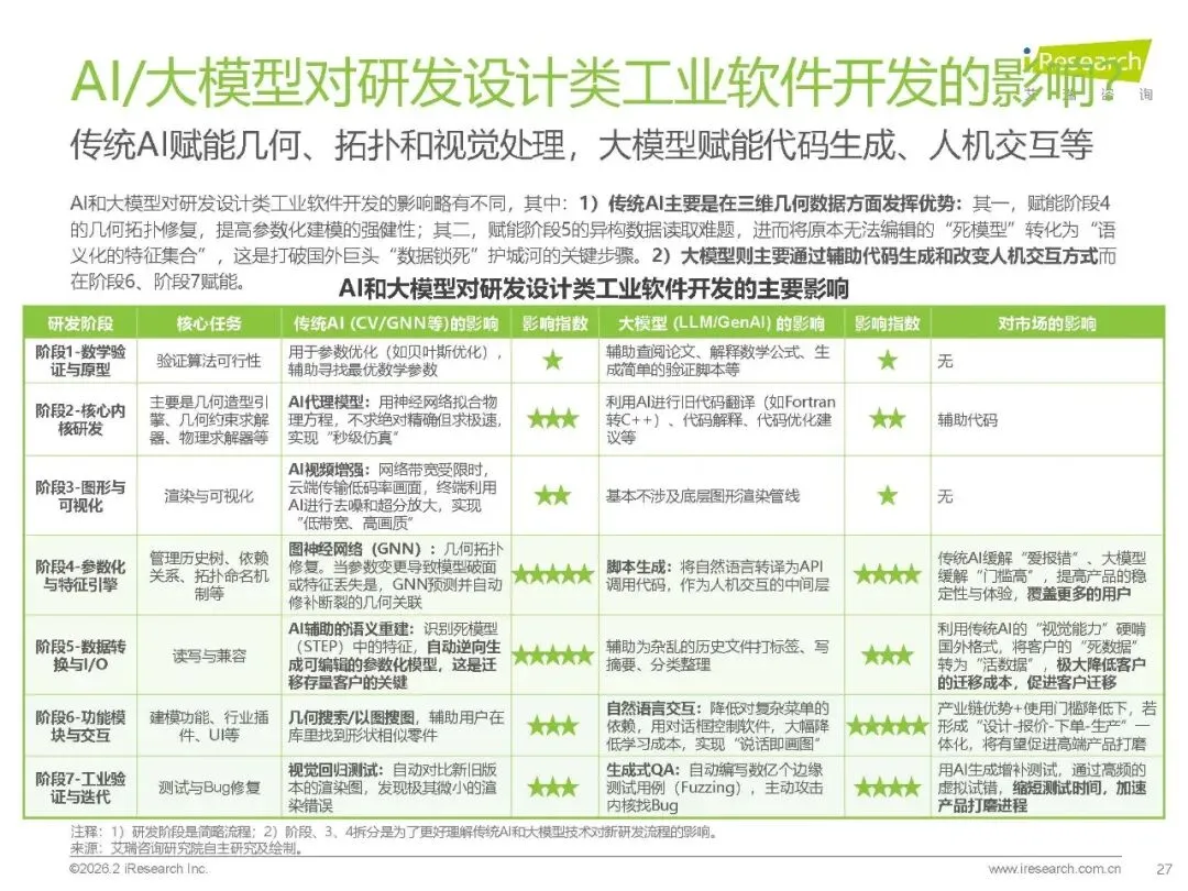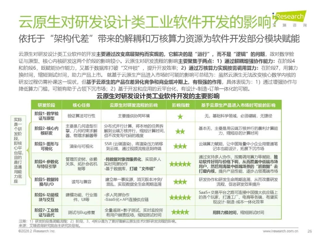 技术赋能:云原生通过架构解耦与算力共享优化研发流程,AI / 大模型助力代码生成、几何修复与交互升级,工业 APP 以轻量化、低代码特性激活长尾市场。