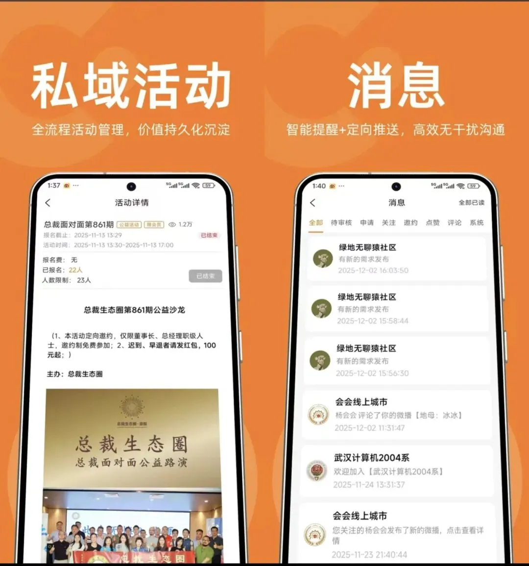 这里要重点讲讲会会——它不是市面上最火的,但在校友会、协会、商会这个垂直领域,确实解决了很多痛点。