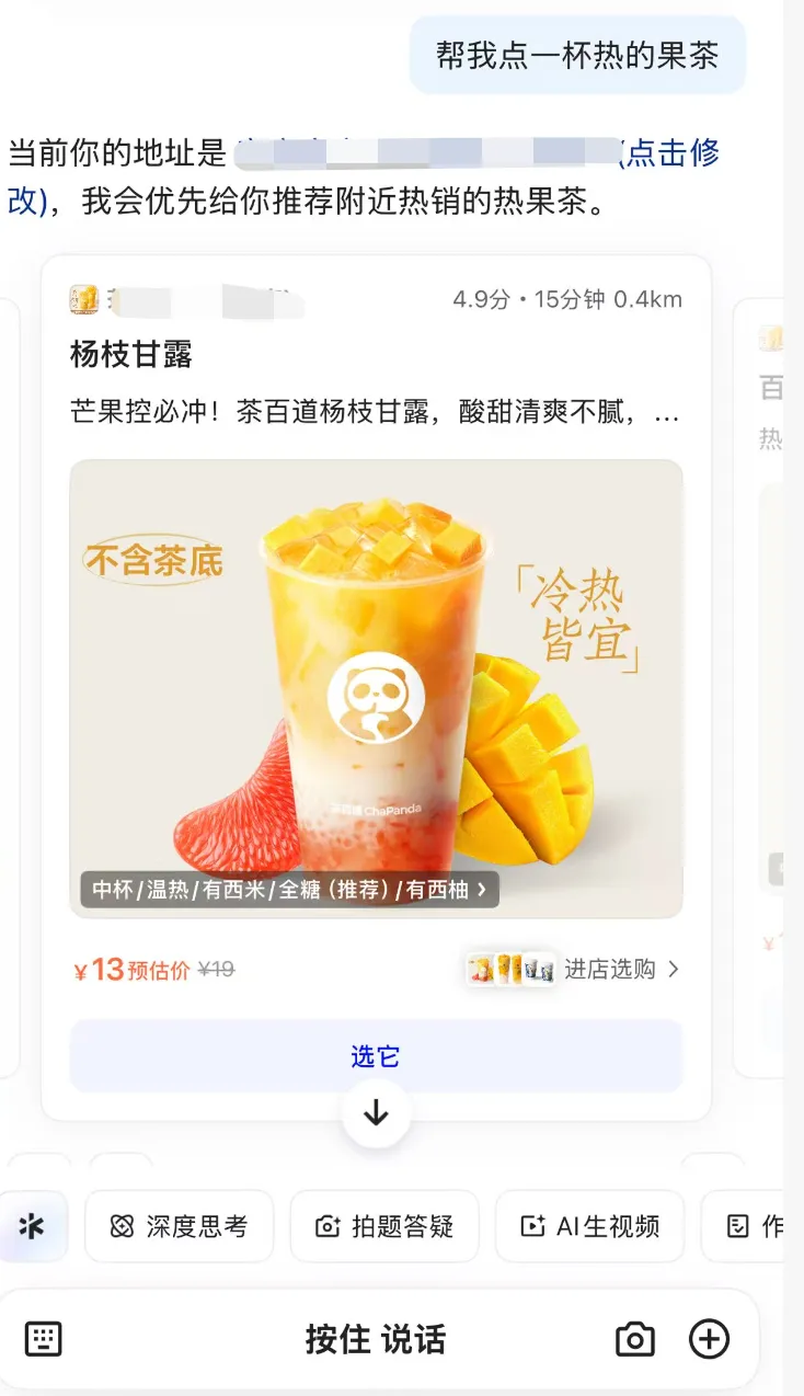 以前:打开美团,翻半天,选奶茶,比价格,填地址,付款…
