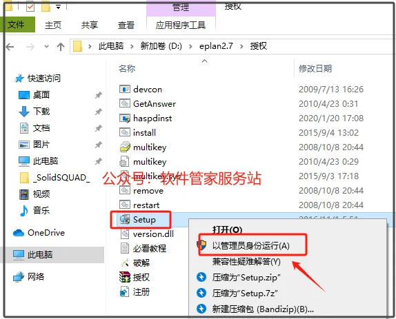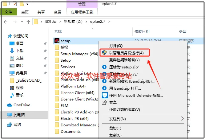 第三步:选中【setup】安装程序,右击【以管理员身份运行】。