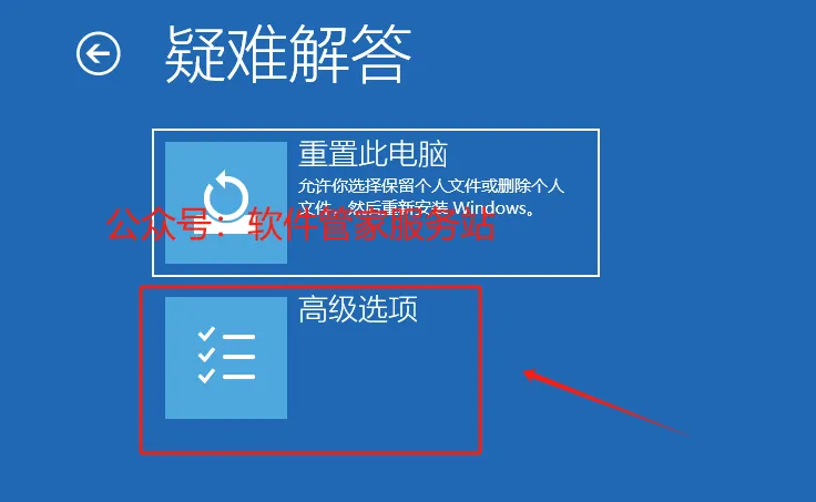 第二十一步:选择【高级选项】。