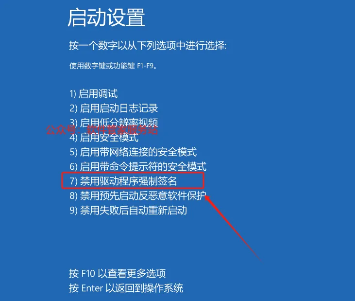 第二十四步:按F7,或点击【禁用驱动程序强制签名】。