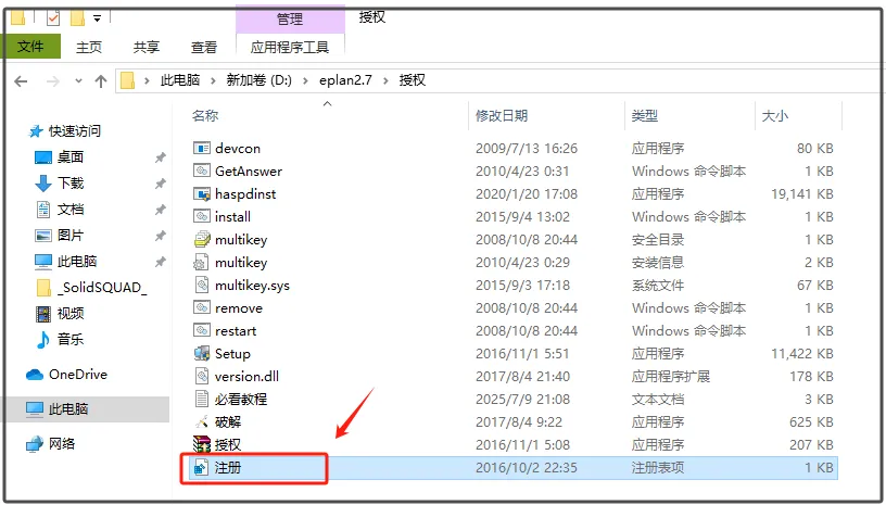 第二十五步:双击运行【授权】文件夹中的【注册】。