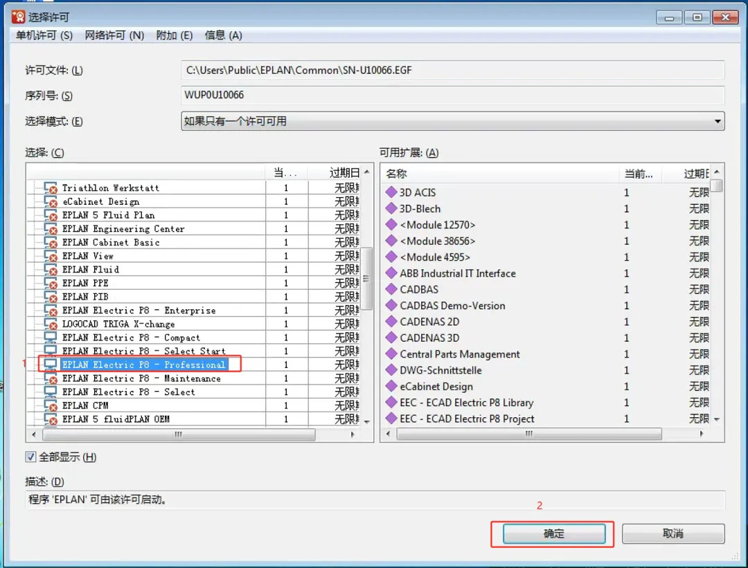 第三十二步:选择【EPLAN Electric】,点击【确定】。