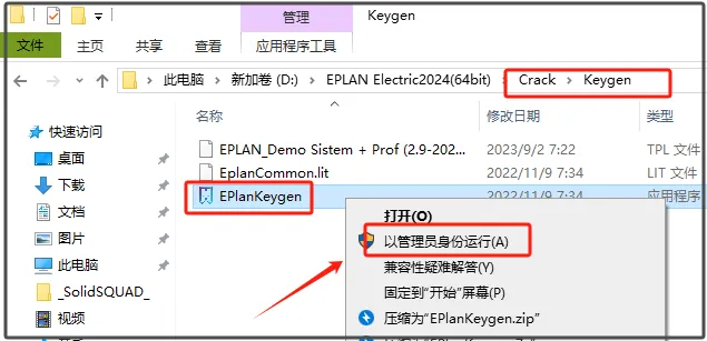 第二十三步:选中【EPlanKeygen】右击【以管理员身份运行】。