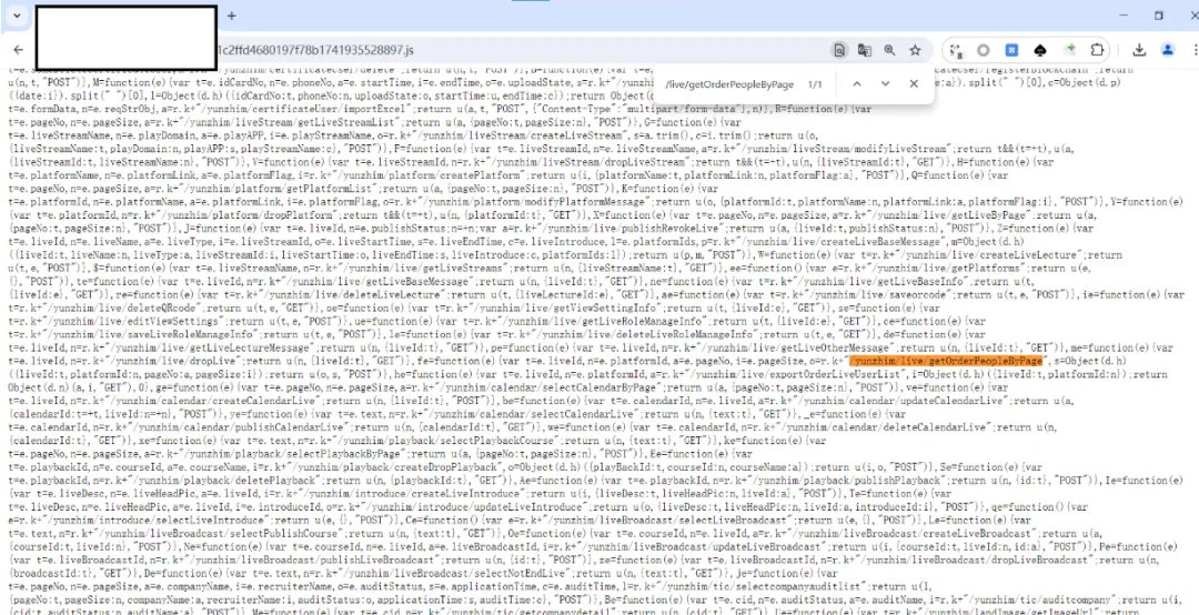 Tips:如果用的是findsomething捕获到的接口,可以直接右键对应接口,findsomething会自动复制,再左键点击箭头,直接追进接口所在的js文件