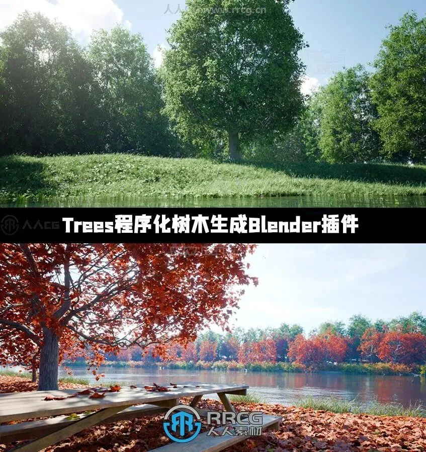 Trees程序化树木生成Blender插件V1.1版 本插件是关于Trees程序化树木生成Blender插件V1.1版,大小:1.7 GB,支持Blender 4.5 – 5.0版软件,支持Win系统,语言:英语。人人CG分享Trees 是一款基于 Blender Geometry Nodes 构建的程序化树木生成插件,旨在以高效率和高度可控的方式创建真实、多样化的植被资源。该插件完全依赖几何节点系统运行,生成速度快、结果稳定,非常适合用于环境搭建、场景概念设计以及动画制作。插件支持 可控随机性,通过简单的 Seed 参数即可生成同一树种的无限变化,在保持整体风格一致的同时有效避免重复感。树木的结构由复杂的算法驱动,主干与枝条的生成遵循类似 达·芬奇分枝规则 的体积守恒原则,使分叉在视觉与结构上更加自然可信。在动态与生命周期方面,Trees 提供风力模拟与年龄控制功能。风参数可让枝干与叶片产生真实摆动,而 Age 滑块则用于控制树木的生长阶段与季节变化,从新生到衰老都能直观呈现。此外,插件还包含 落叶系统,可将新叶或枯叶实例化到地面或指定区域,进一步增强场景真实感。整体而言,Trees 是一款兼顾真实度、性能与灵活性的 Blender 程序化植被解决方案。 下载地址:https://www.rrcg.cn/thread-16796812-1-1.html 人人CG – 专业数字艺术分享平台