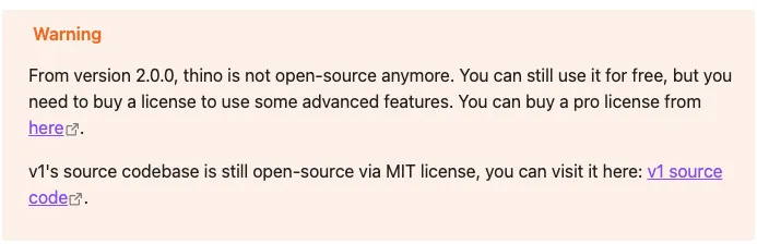 Thino 以前叫 obsidian-memos,现在改名了,定位也说得很直白:A new way for you to quick capture an idea in Obsidian——给你一个更顺手的“快写”入口。2.0 之后作者把项目闭源了,高级功能要买授权,基础功能还是免费的,老版本 v1 代码还在 GitHub 上开源。 老实讲,我看到“闭源 + 收费”那一行的时候也皱了下眉,但转念一想,人家也要吃饭嘛,而且日常用的那点功能,免费版已经够用很久。
