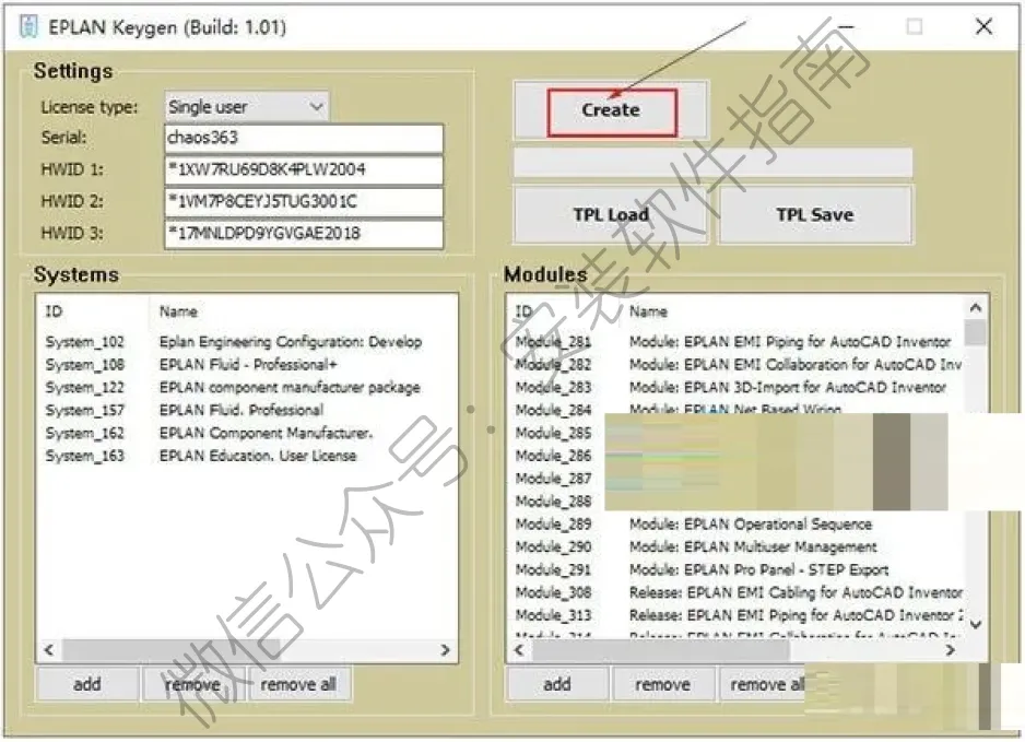 14、这样就完成了软件版本和模块的加载,然后点击“creat”。