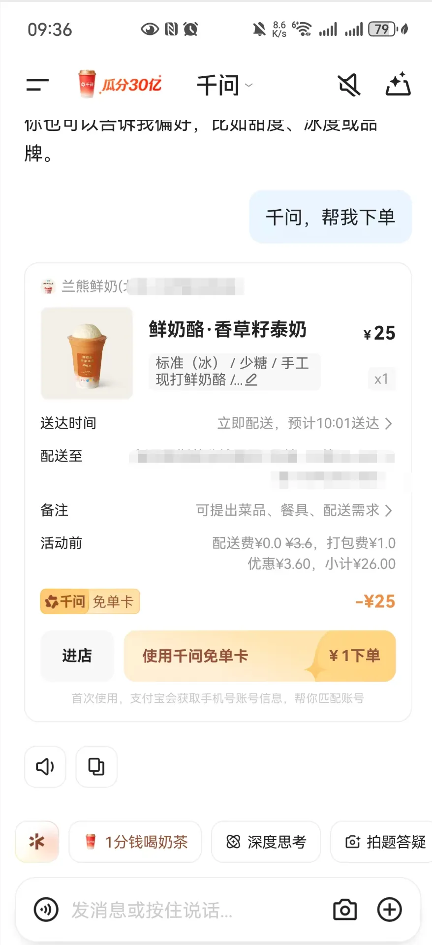 千问App免单喝奶茶(详细实操)