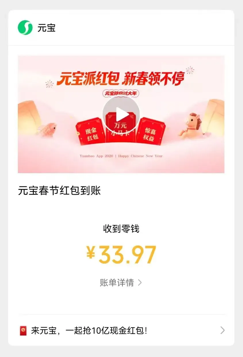 “复制!春节打开元宝App,抢红包好运来!”