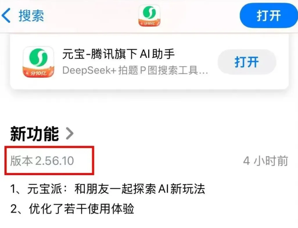 2. 打开元宝App:确保是最新2.56.10版本; -