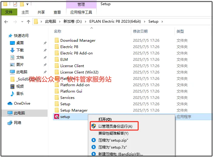 第九步:选中【setup】安装程序,右击【以管理员身份运行】。