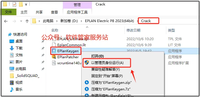 第二十二步:再次返回【Crack】文件夹,选中【EPlanKeygen】右击【以管理员身份运行】。