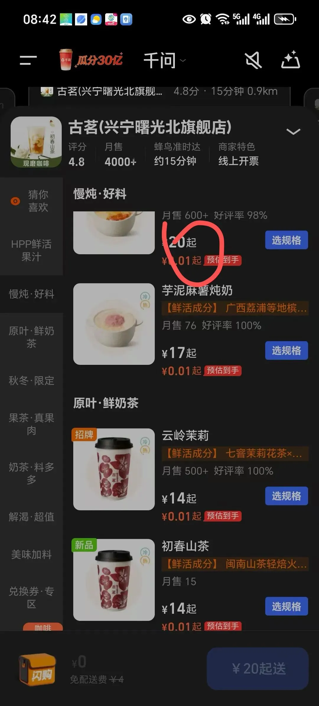 【千问APP】 请你喝奶茶,每杯只要0.01