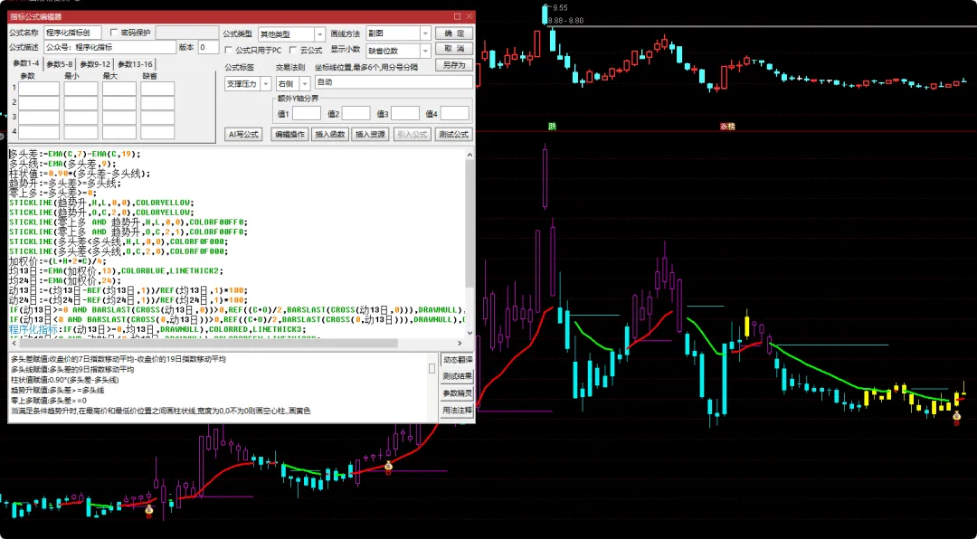 高13压:=HHV(MA(H,13),13);低13支:=LLV(MA(H,13),1);