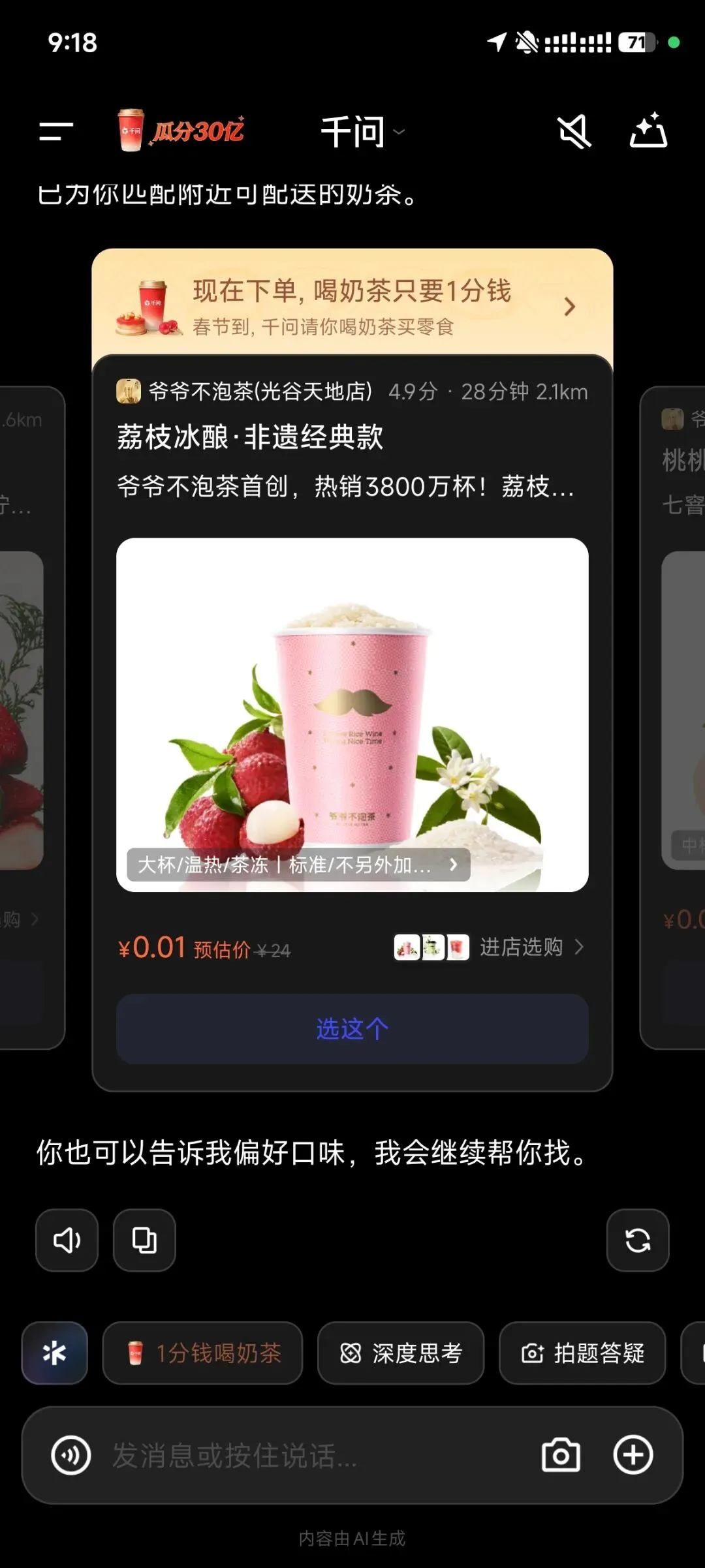 2 月 6 日一早,阿里千问 APP 直接砸出 30 亿启动 “春节大免单”,人人能领 25 元无门槛免单卡,最多能薅 21 张,白拿 525 块钱!一句话让 AI 帮你点奶茶、买年货、订机票,瑞幸、蜜雪冰城等 30 多万家门店通用,一家六口 5 分钟就能薅 275 元,喝 84 杯柠檬茶吃到爽。这波操作,直接把互联网大厂的 AI 入口争夺战推到了高潮。