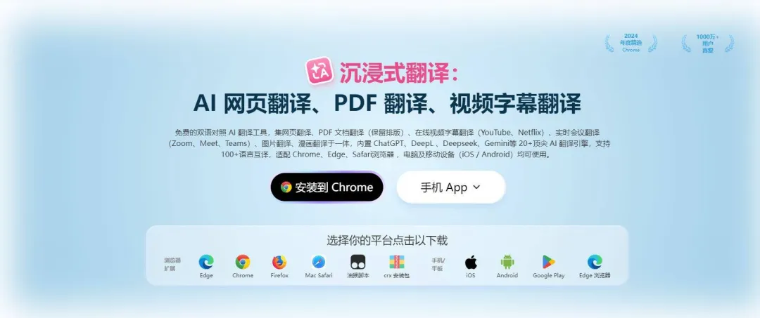 从2023年上线至今,它已经帮1000万用户打破语言墙。不管是阅读外语网页、看海外视频,还是查看技术博客,都能用母语沉浸式获取信息,完全不用适应翻译后的割裂感。