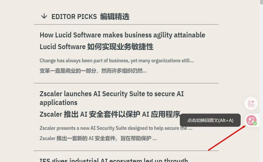 沉浸式翻译的网页实时翻译功能,堪称秒翻神器。使用方式也非常的简单,安装完插件,只需要点击屏幕右侧翻译按钮,就可以一键翻译