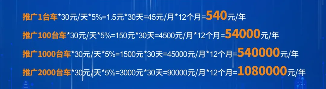 算笔账:推 100 个司机,每个司机每天充电 30 元→你每天赚 100×30×5%=150 元,一个月就是 4500 元,这钱是躺着来的! -