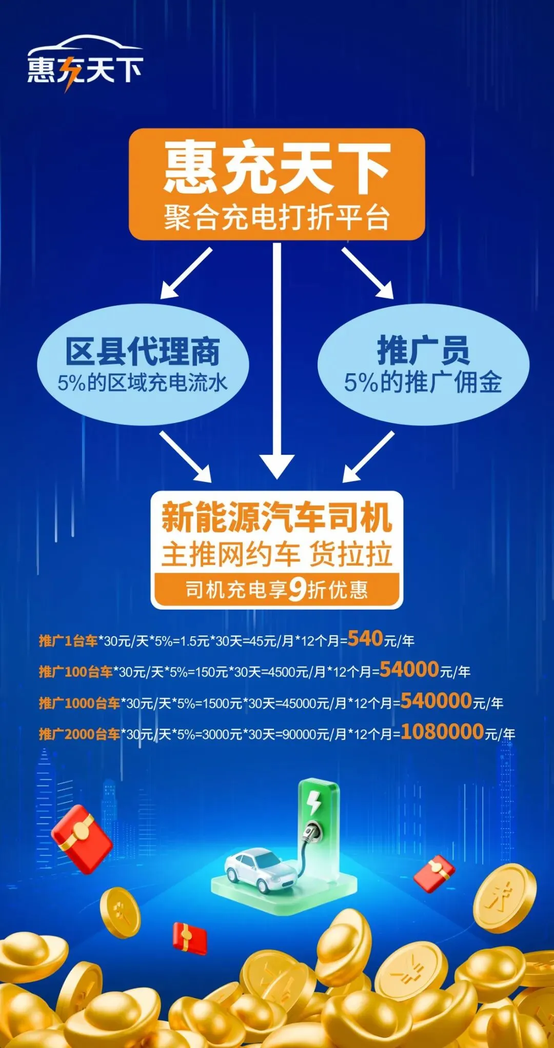 推广不用费劲:司机跑单最愁充电贵、换 APP 麻烦 —— 你只要跟他说 “不要任何费用,下载惠充天,就能 全单9 折充电,一个 APP 通充国网、特来电的桩”,他直接就会下!