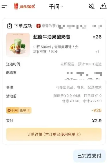 千问App春节30亿大免单!1元古茗+2.9元奈雪,打工人白嫖攻略!