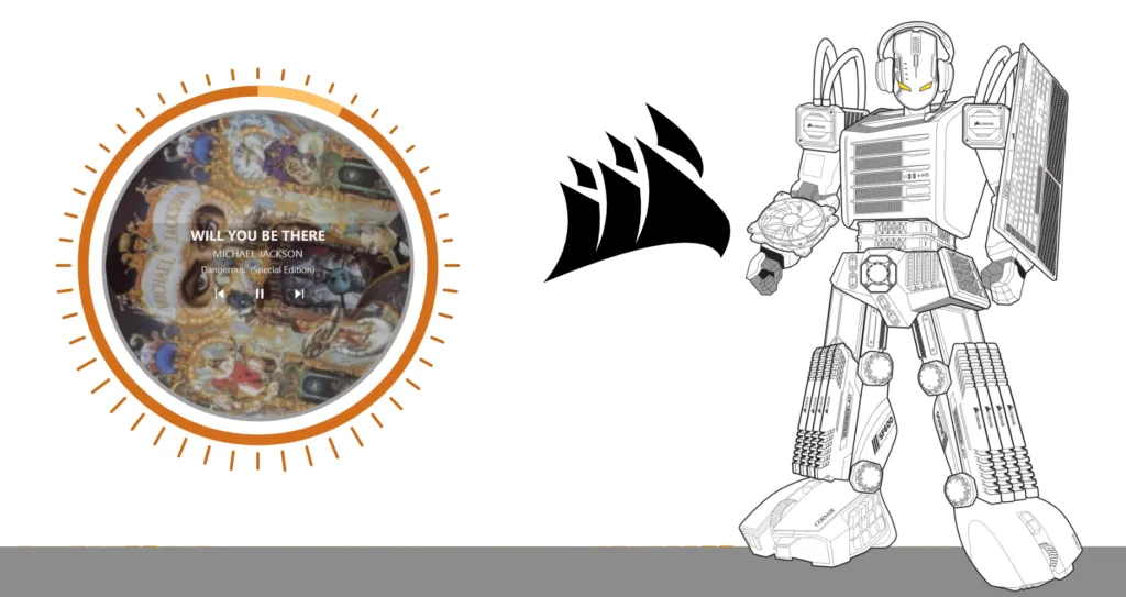 最后的界面如下(只有那个橙色的环,那个机器人是我Steam Wallpaper Engine的壁纸)。