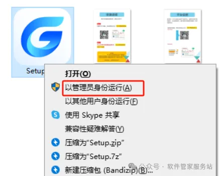 第三步:打开解压后的文件,找到setup,右击以管理员身份运行。