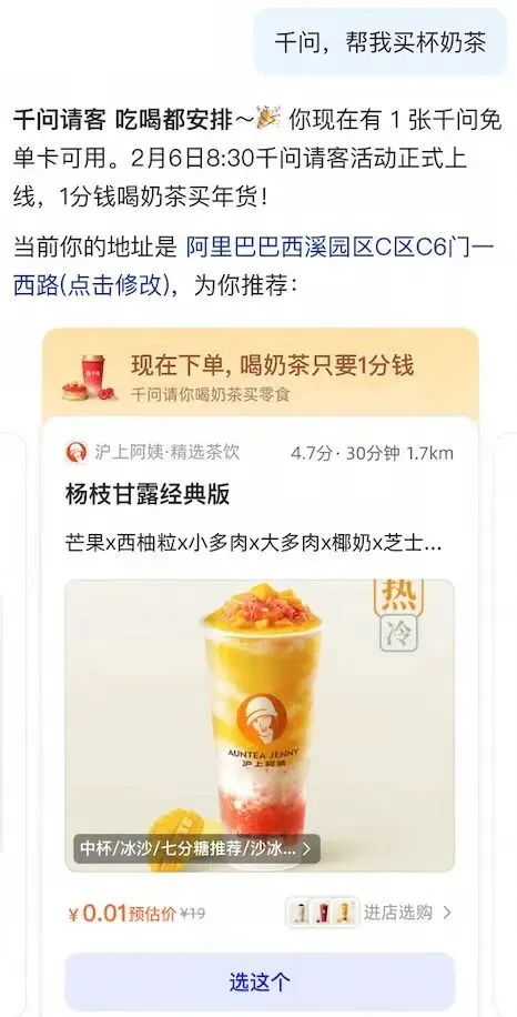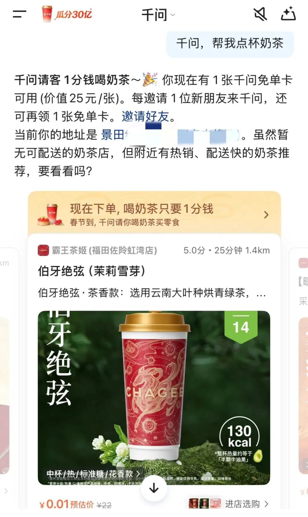 深圳人都在晒!用千问APP点的“AI奶茶”,免单真香!