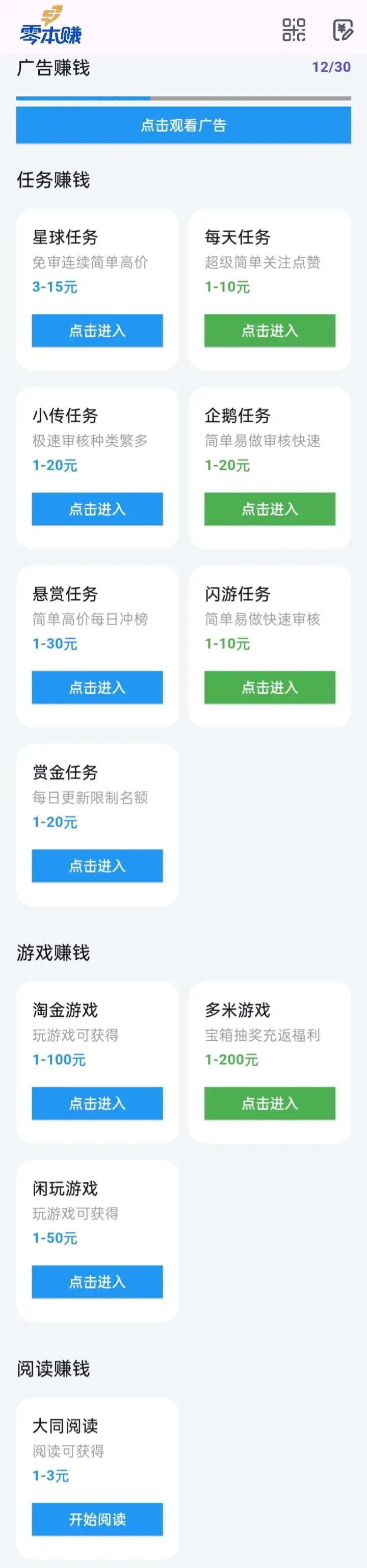 叶师傅推荐一款副业赚钱聚合App零本赚,可以看广告挣钱、做任务挣钱、玩游戏挣钱、阅读挣钱。