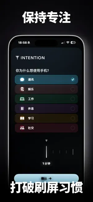 介绍:一款效率应用,可系统级屏蔽分心应用,需说明使用意图并设定时长才能解锁。支持锁屏和灵动岛实时计时,生成每周使用洞察,数据本地存储无追踪,帮你养成健康的手机使用习惯。 ![]() ![]() ![]() 长按二维码 识别下载 |