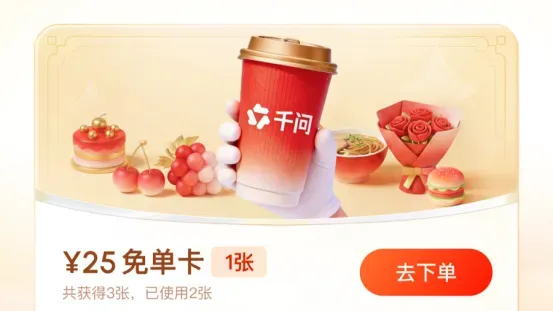 全场景通兑:免单卡不仅限于奶茶,还打通了淘宝闪购、外卖、天猫超市等阿里生态场景。