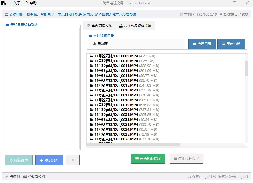 运行软件后会自动扫描内网支持dlna投屏的设备,如果没有搜到需要确保电视在同一网络,且电视明确支持DLNA协议。