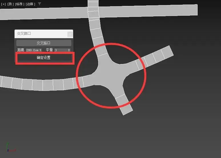 4.单击“确定设置”按钮,完成十字路口生成!(可以重新开始新的路口创建)