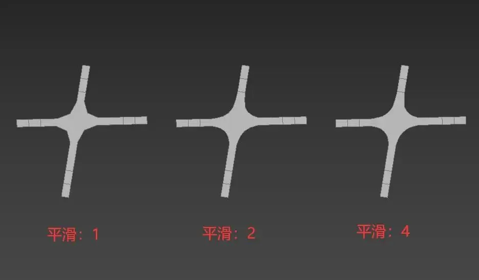 【不同“平滑”度值下路口圆弧的平滑程度】