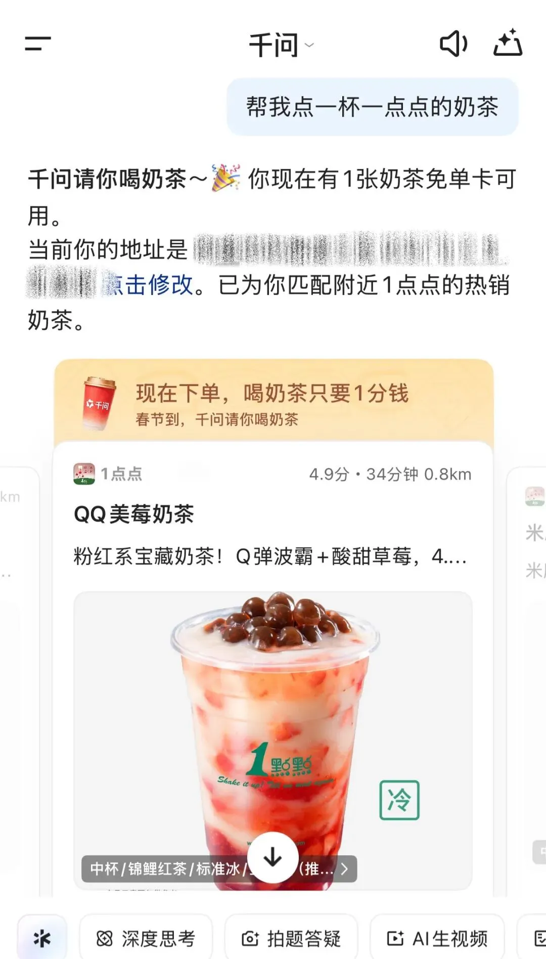 奶茶免单福利来了!上千问App人人都能领25元!有人领到了525元!!