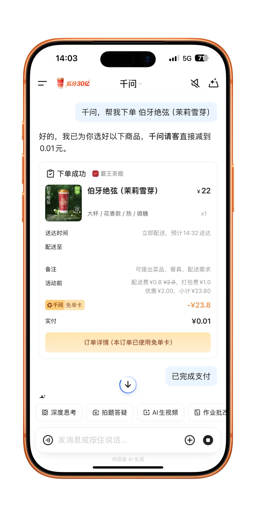 千问APP请你喝奶茶,你点到了吗?