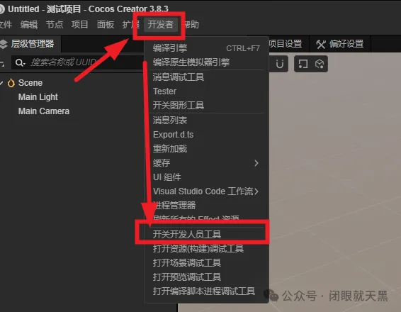 我们在项目里,点击顶部菜单【开发者】=>【开关开发人员工具】
