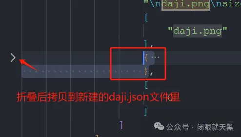 22. 我们把蓝色框的json数据复制一下,新建一个daji.json数据,并把数据拷贝过去。
