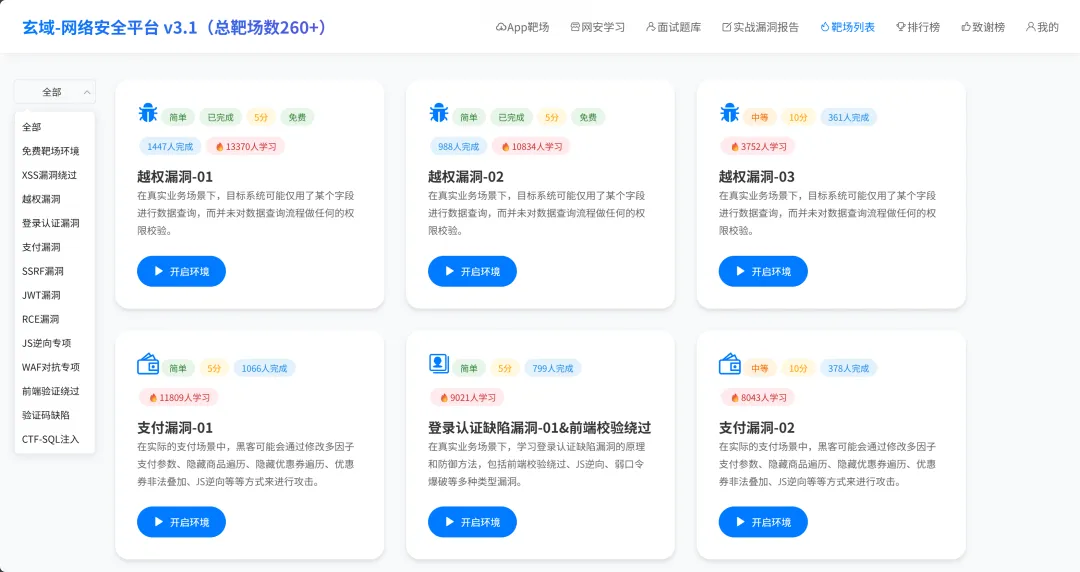 玄域Web/安卓/苹果App渗透靶场-新增CTF-SQL注入系列靶场-总靶场环境数突破260+