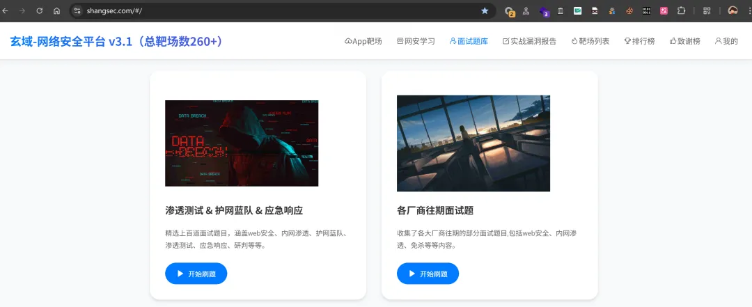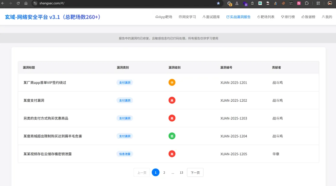 目前已建成Web渗透靶场、安卓App渗透靶场、苹果App靶场、面试刷题板块、实战漏洞报告板块等等,且一直在持续更新中,今年也将建成1000+高质量靶场环境!