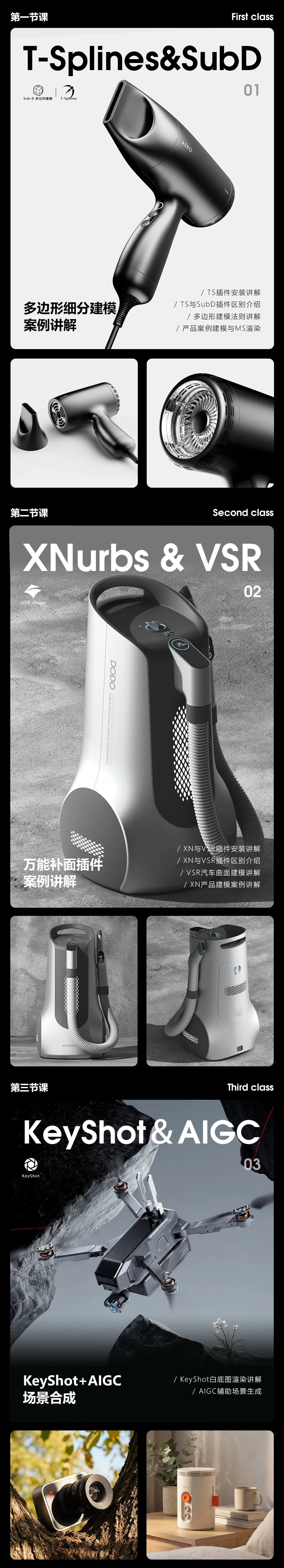课程全程围绕 3 个小产品案例实操教学,手把手教你把技巧复刻到自己的设计流程里,建模渲染省时省力又省心。