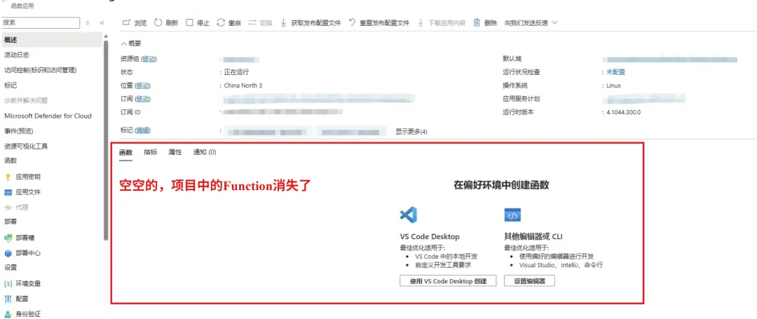 【Azure Function App】部署完 Azure Function 发现 Function 在门户消失了
