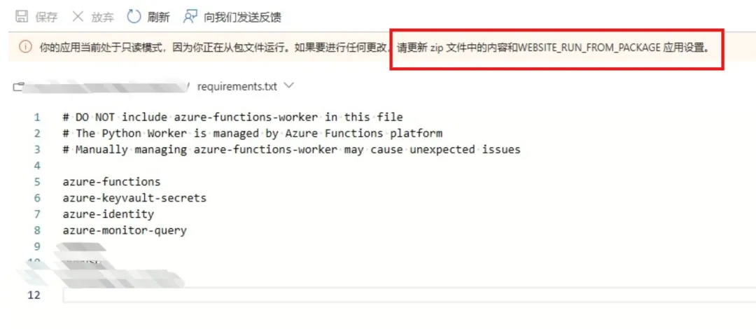 2:在 requirements.txt 文件中添加上azure.monitor包