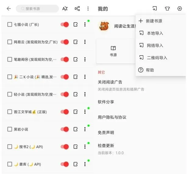 软件里内置了好多精品书源,像小说、漫画、听书这三大类内容应有尽有。内置的书源多达648条,各种类型的书籍和漫画几乎都能找到。而且, 一切都可以完全免费阅读 ,这点真的是太划算了。