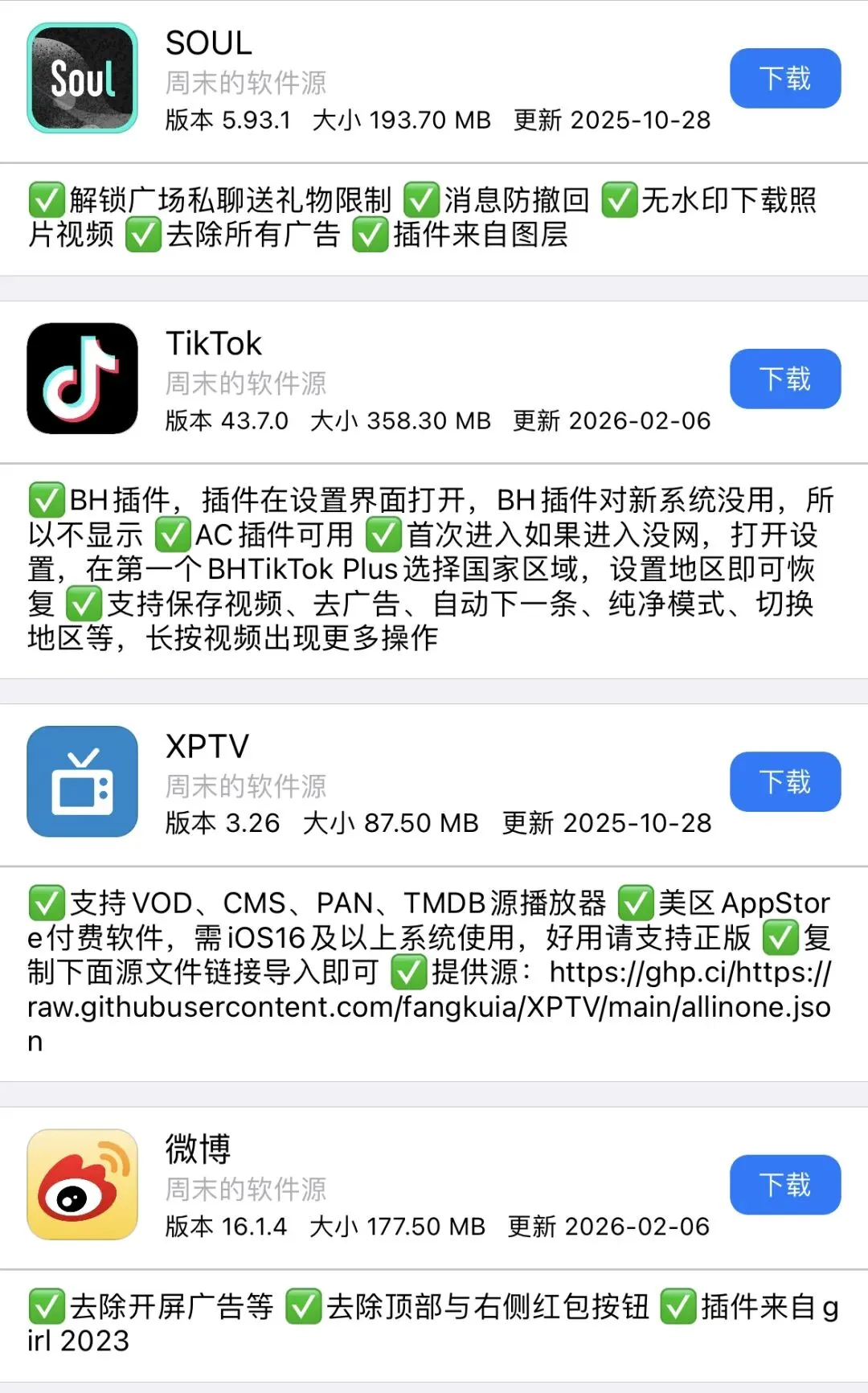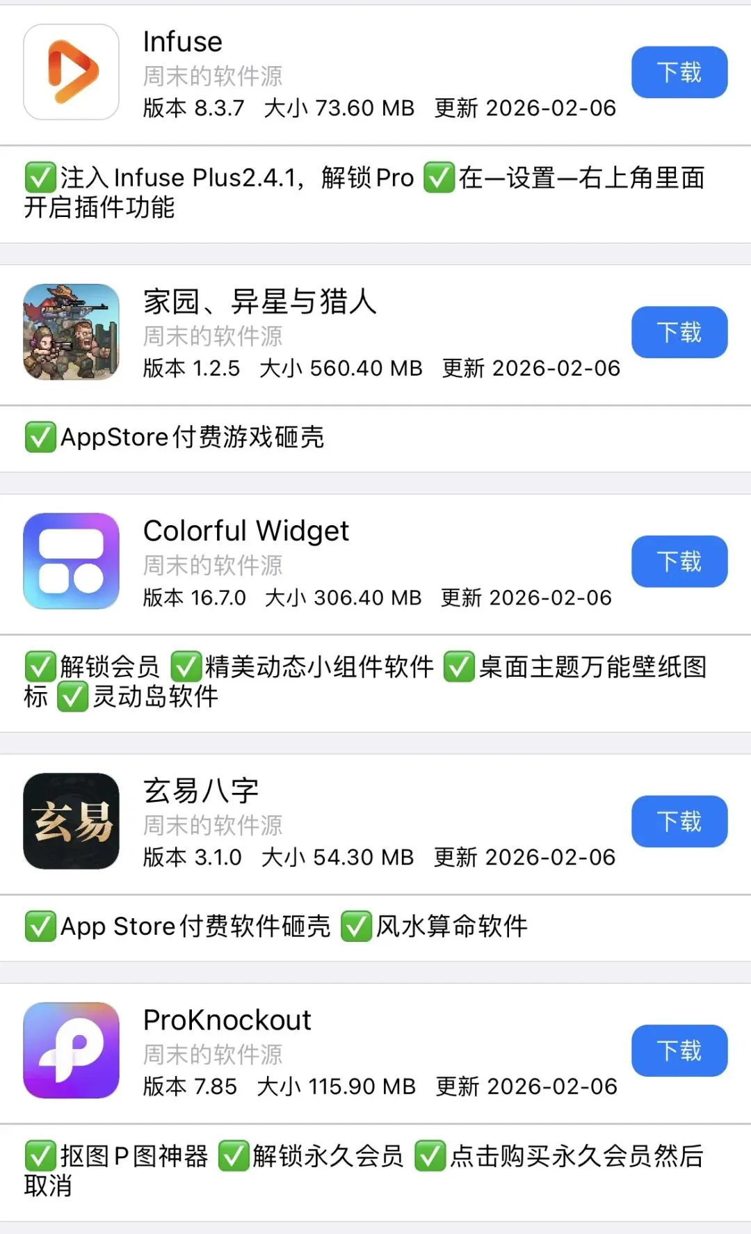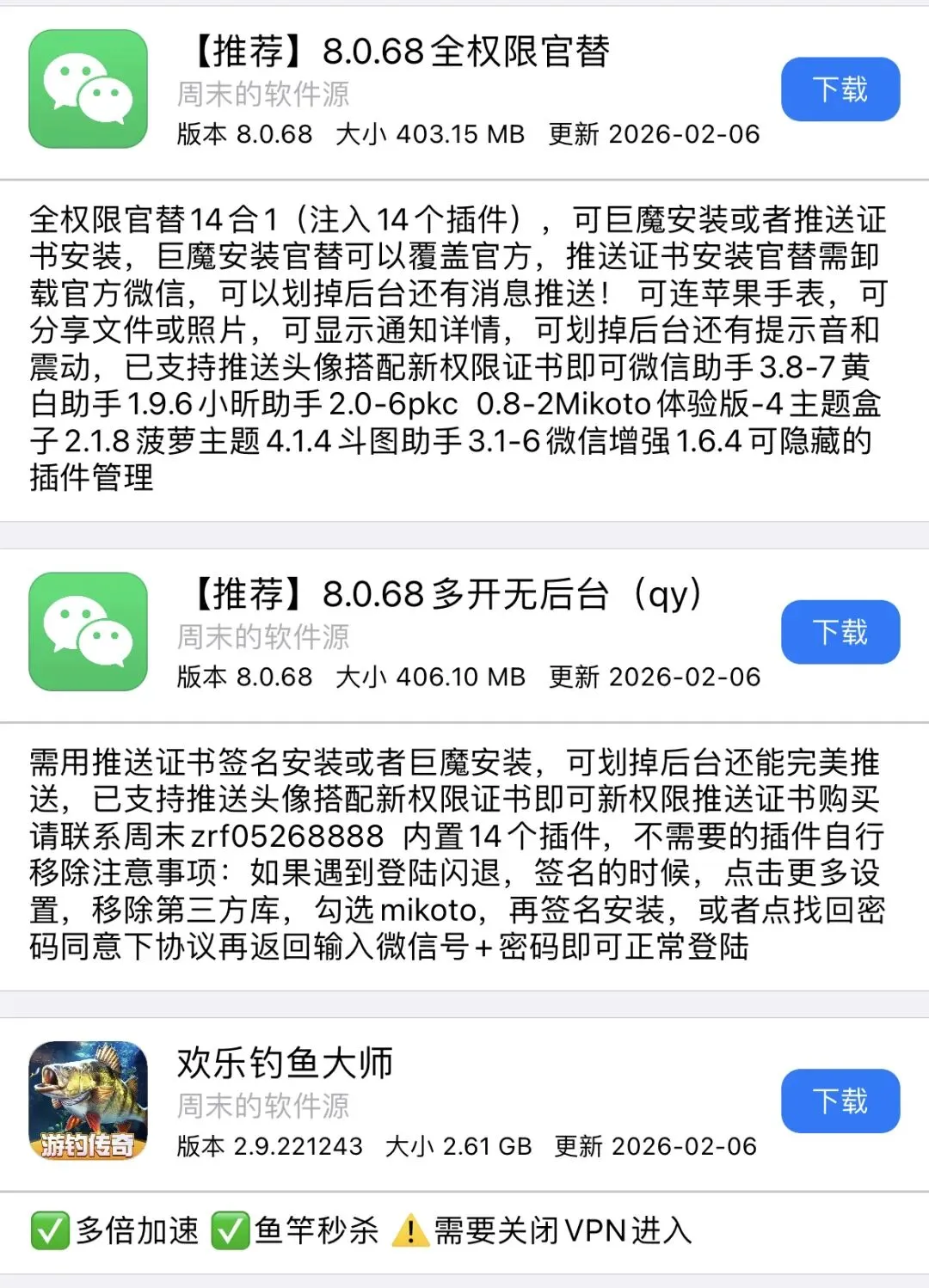 今日周末软件源更新APP如图!需要的自行下载安装! 周末软件源(http://zz.zhoumo.store/appstore)今日更新APP,自行安装使用。 使用方法可通过此公众号联系周末 需要特定软件可以私聊周末或者评论区反馈