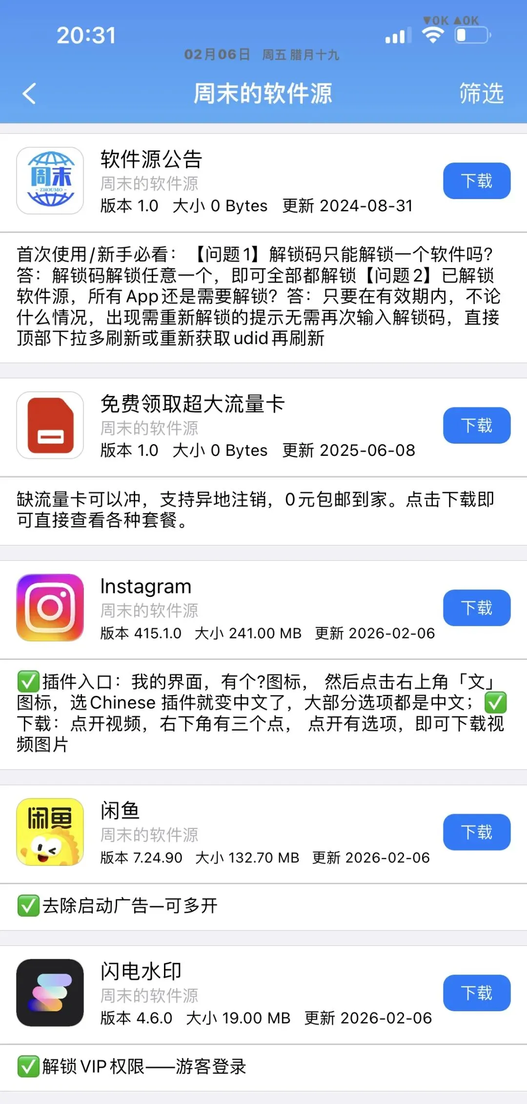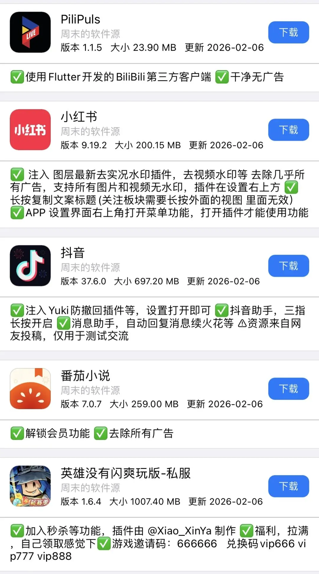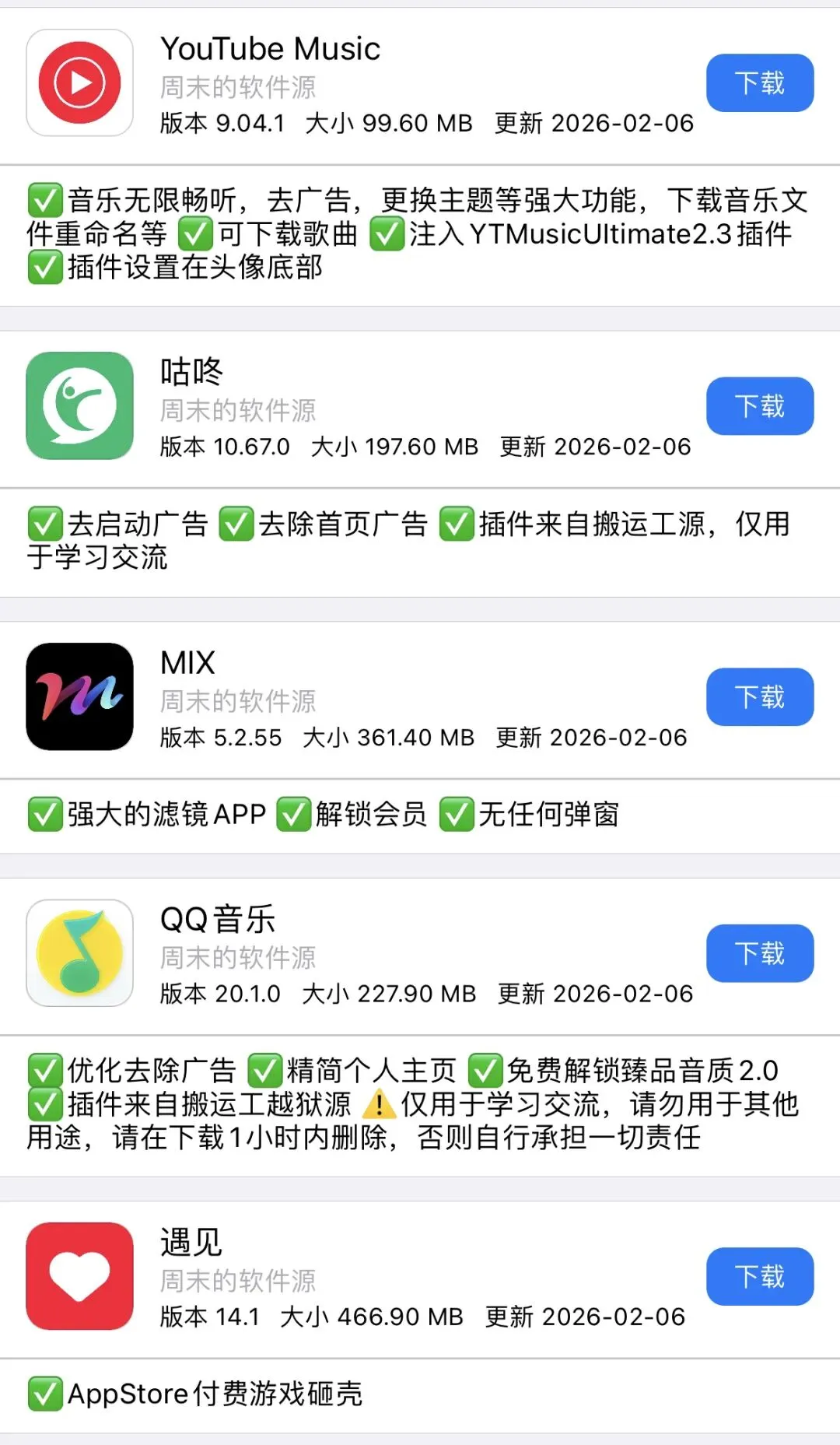 今日周末软件源更新APP如图!需要的自行下载安装! 周末软件源(http://zz.zhoumo.store/appstore)今日更新APP,自行安装使用。 使用方法可通过此公众号联系周末 需要特定软件可以私聊周末或者评论区反馈